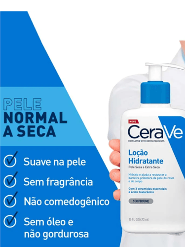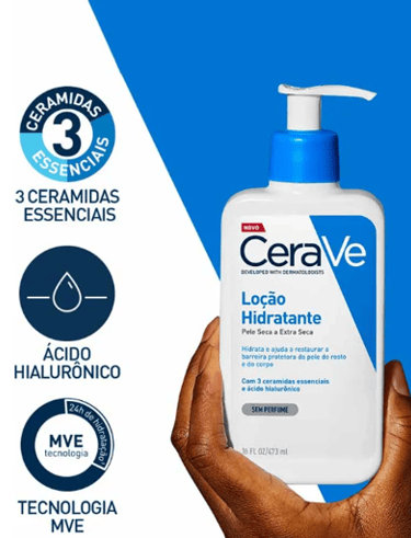 TRANSFORME SUA PELE! Sua pele clama por hidratação intensa e duradoura? Descubra a loção que oferece um cuidado profundo, restaurando o conforto e a saúde da sua pele. A Loção Hidratante Corporal CeraVe com Ácido Hialurônico é a solução perfeita para uma pele intensamente hidratada. Desenvolvida com dermatologistas, sua fórmula exclusiva contém 3 ceramidas essenciais e ácido hialurônico, que trabalham para restaurar e manter a barreira protetora natural da pele. A tecnologia patenteada MVE garante uma liberação contínua de ativos, proporcionando hidratação por até 24 horas, com uma textura leve. Imagine uma pele que se mantém macia, suave e hidratada o dia todo, sem sensação de ressecamento ou desconforto. Sinta a diferença de uma pele visivelmente mais saudável e equilibrada, com a barreira protetora fortalecida e a confiança de um cuidado diário que realmente funciona, sem fragrância e sem obstruir os poros. Integre a Loção Hidratante CeraVe 473ml à sua rotina diária e aplique generosamente sempre que necessário para experimentar a hidratação profunda e duradoura que sua pele merece, revelando uma maciez e suavidade incomparáveis.